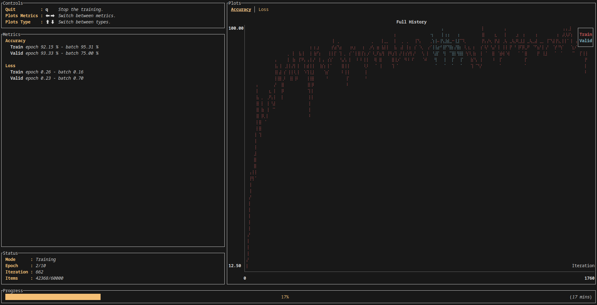 Burn offers some interesting visualization of the training right out of the box: